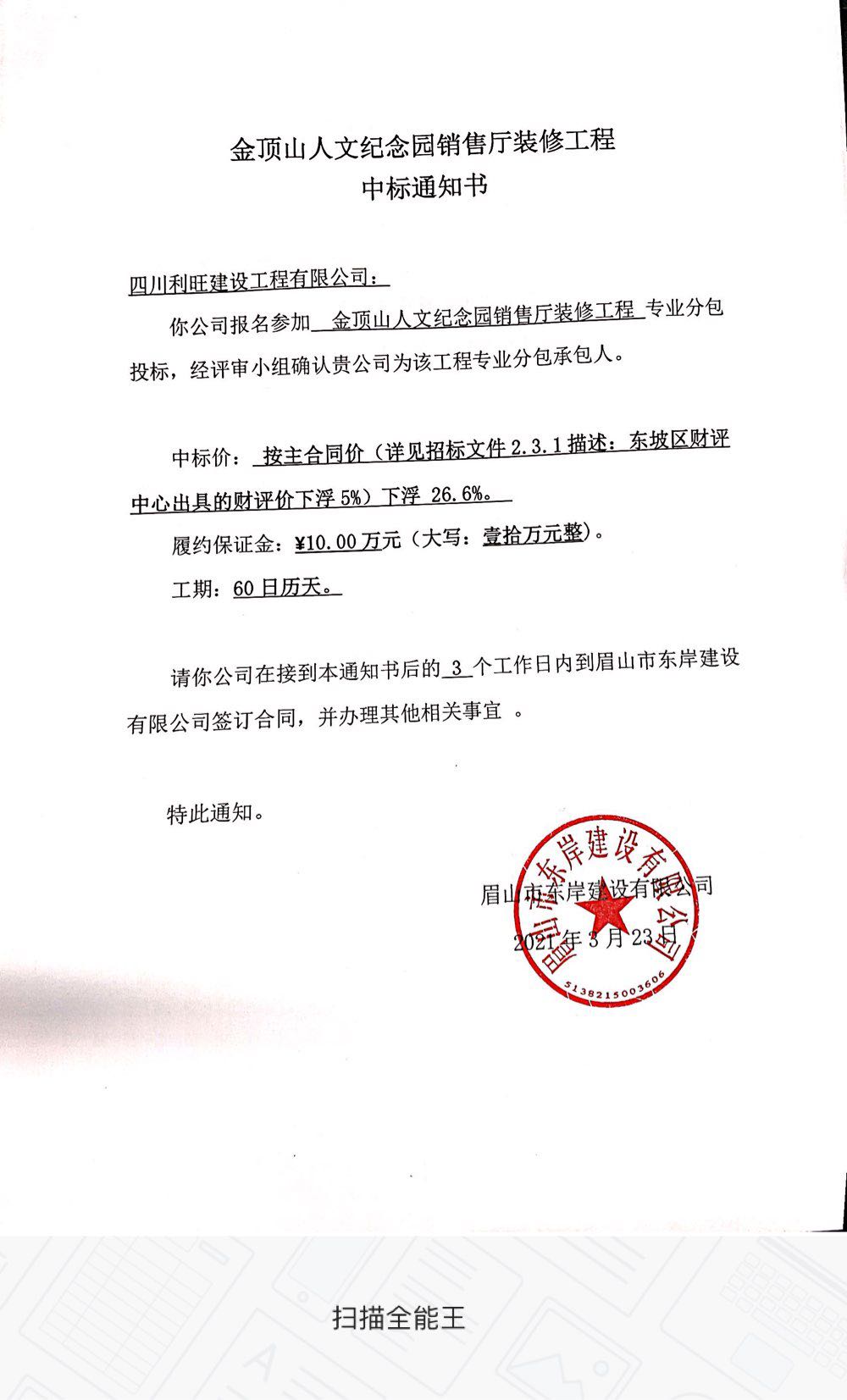 金頂山人文紀念園銷售廳裝修工程中標(biāo)公示